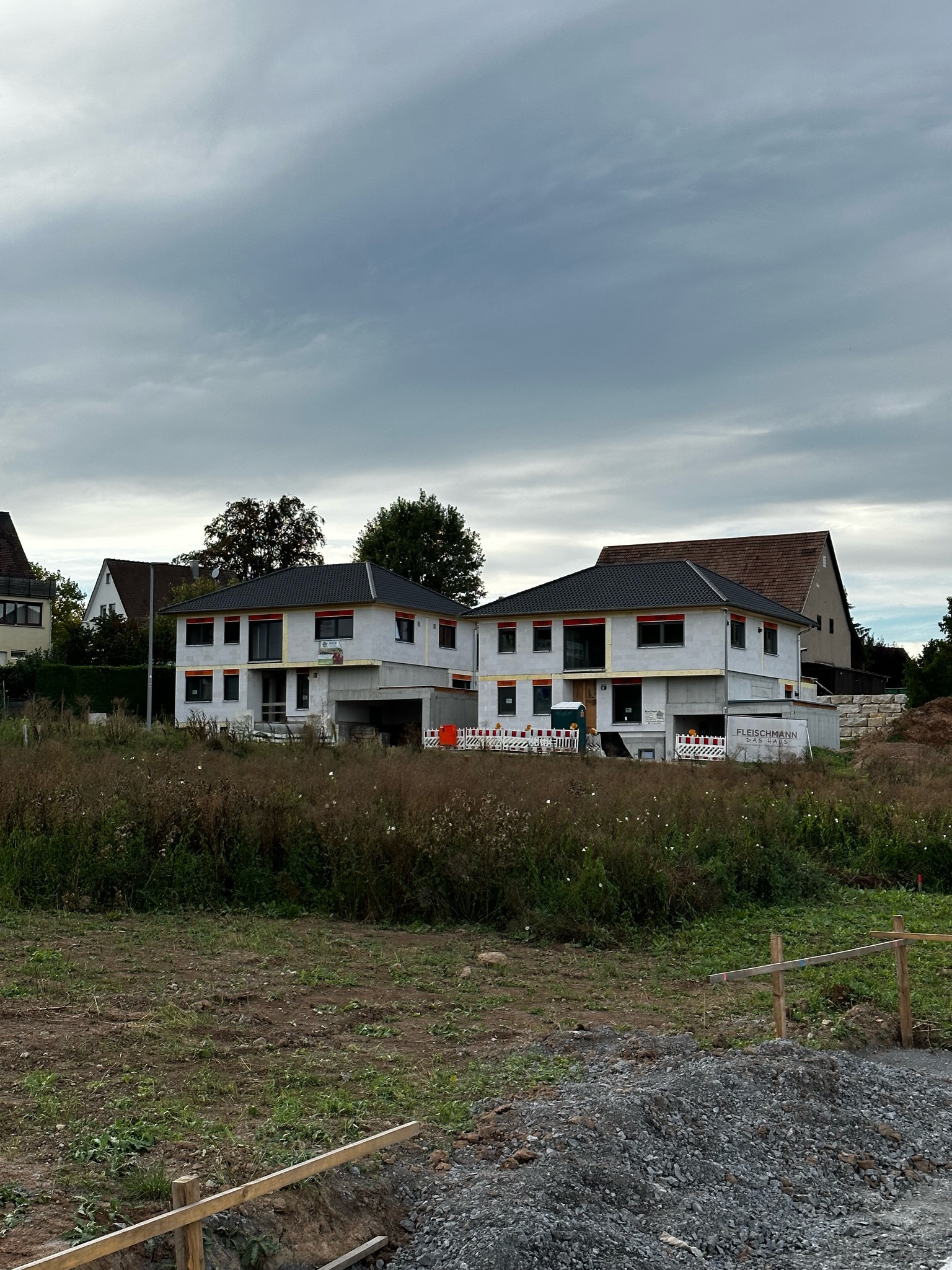 Im Neubaugebiet Spitzäcker II in Weinsberg durften wir zwei moderne Einfamilienhäuser mit Einliegerwohnung realisieren und schlüsselfertig übergeben. Die Bauherrschaft brachte sich mit viel Engagement und Eigenleistungen in den Bauprozess ein – ein schönes Beispiel für gemeinschaftliches Bauen.