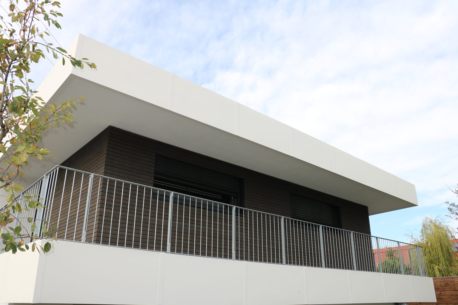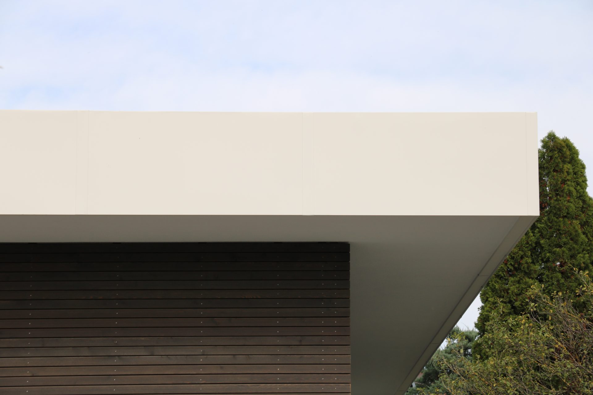 Da das Wohnhaus bereits einen früheren Anbau aufweist, wurde bewusst ein architektonischer Kontrast gewählt. Der neue Baukörper tritt als eigenständiges Element in Erscheinung, das sich gestalterisch klar vom Bestand abhebt und eine autonome Wirkung entfaltet.