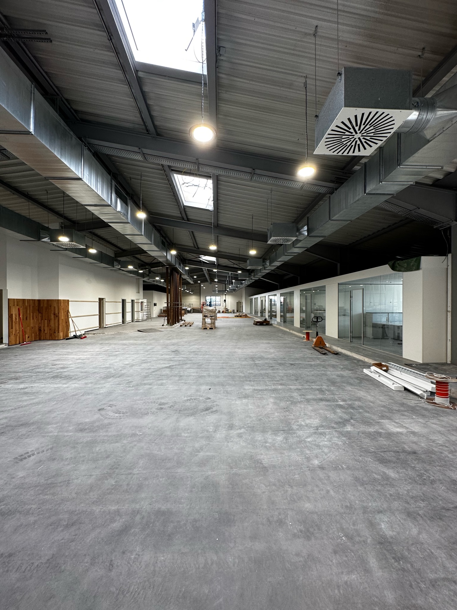 Im Zuge des Umbaus wurde die gesamte Fußbodenheizung samt Estrich entfernt, um Platz für eine robuste Magnesiumbeschichtung zu schaffen, die den hohen Belastungen durch Maschinen und Produktionsprozesse dauerhaft standhält. Der Umbau der über 2.000 m² großen Fläche war nicht nur technisch anspruchsvoll, sondern auch ein Projekt mit besonderem Wiedererkennungswert – ein Stück Firmengeschichte, das wir erfolgreich in eine neue Ära überführt haben.