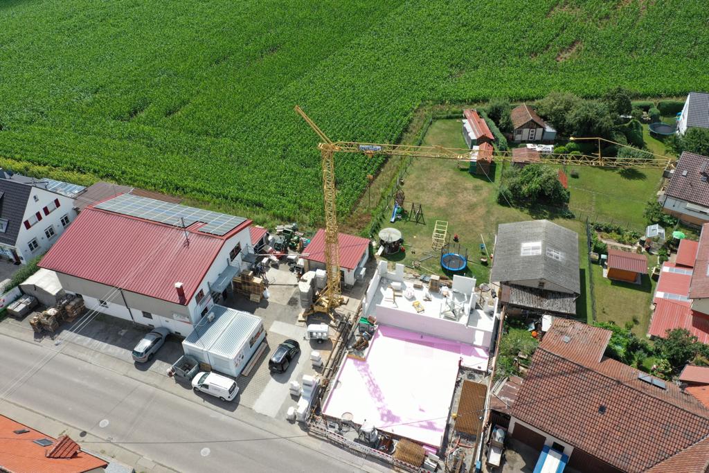 In Helfenberg wurde zunächst eine alte Scheune abgerissen, um Raum für ein neues Nutzungskonzept zu schaffen. Auf dem Grundstück entstand ein modernes Wohnhaus mit direkt angrenzender Halle – eine gelungene Kombination aus privatem Lebensraum und funktionalem Arbeitsbereich.